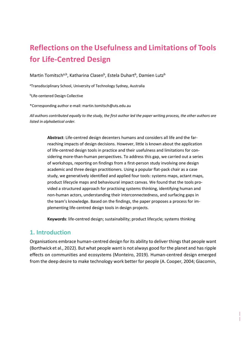 Reflections on the Usefulness and Limitations of Tools for Life-Centred