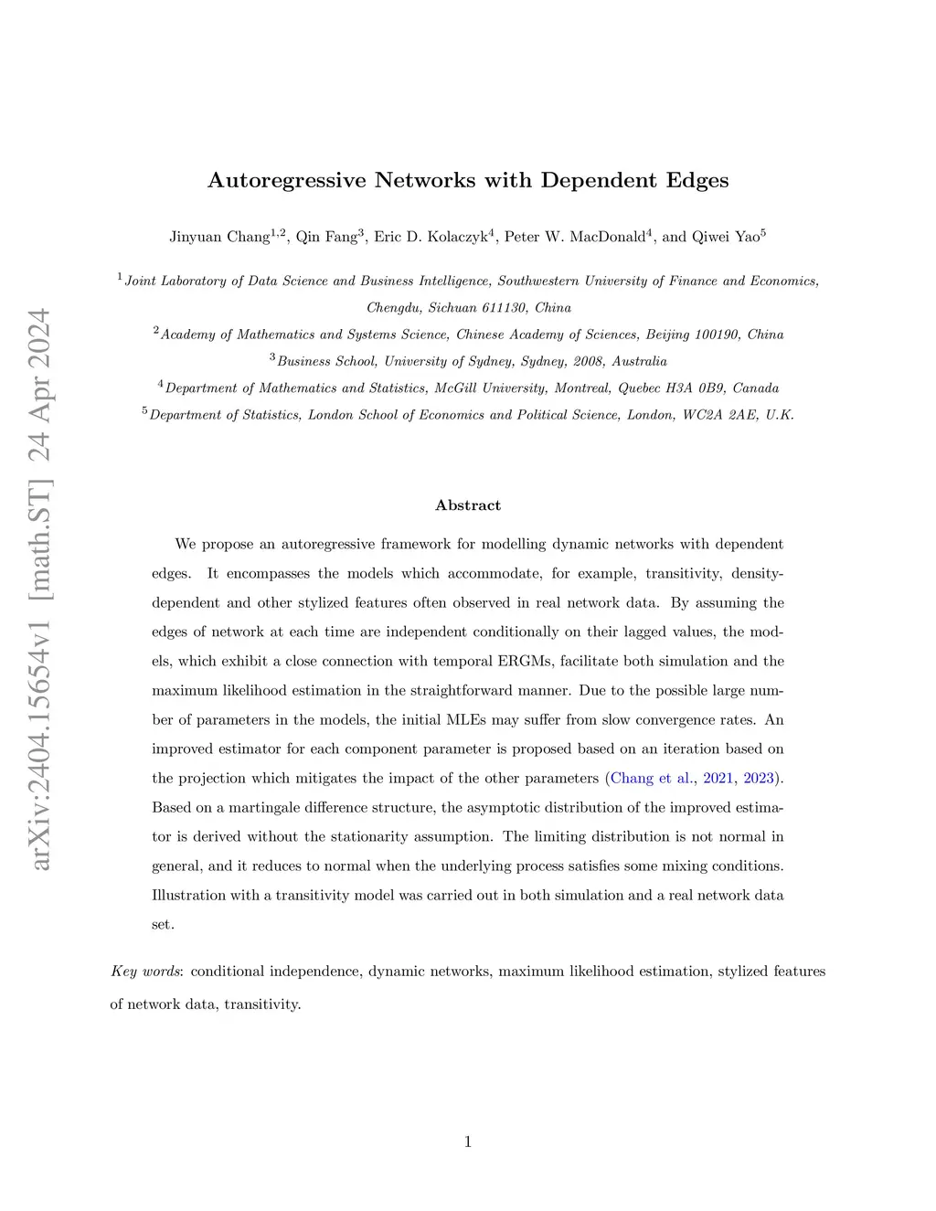 We propose an autoregressive framework for modelling dynamic networks with dependent edges. It encompasses the models which accommodate, for example, transitivity, density-dependent and other stylized features often observed in real network data. By assuming the edges of network at each time are independent conditionally on their lagged values, the models, which exhibit a close connection with temporal ERGMs, facilitate both simulation and the maximum likelihood estimation in the straightforward manner. Due to the possible large number of parameters in the models, the initial MLEs may suffer from slow convergence rates. An improved estimator for each component parameter is proposed based on an iteration based on the projection which mitigates the impact of the other parameters (Chang et al., 2021, 2023). Based on a martingale difference structure, the asymptotic distribution of the improved estimator is derived without the stationarity assumption. The limiting distribution is not normal in general, and it reduces to normal when the underlying process satisfies some mixing conditions. Illustration with a transitivity model was carried out in both simulation and a real network data set.