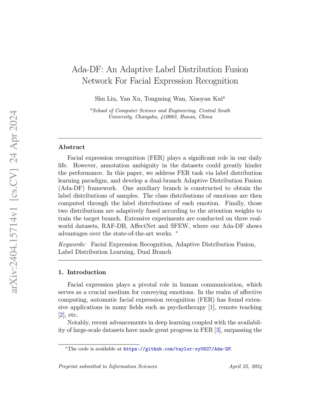 Ada-DF: An Adaptive Label Distribution Fusion Network For Facial