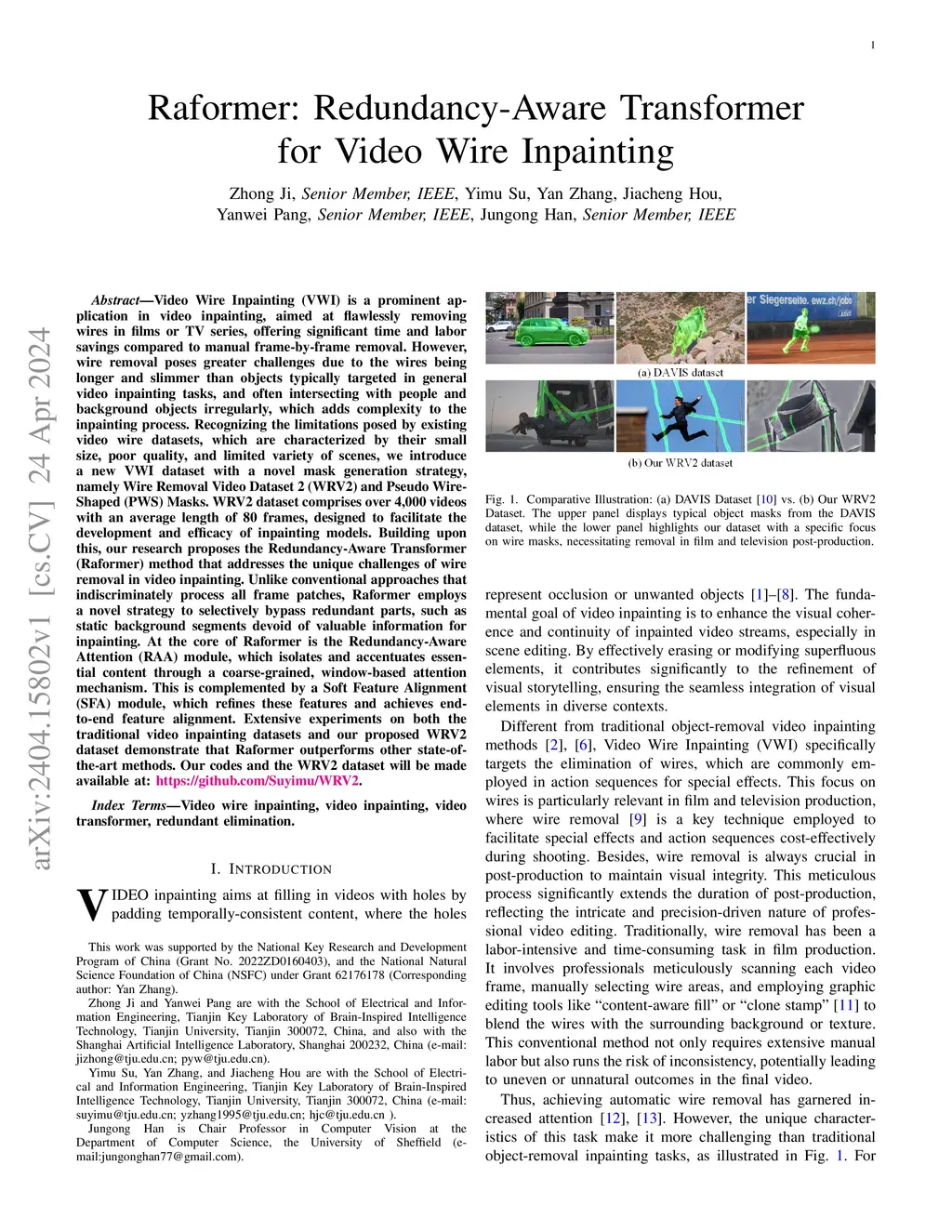 Raformer: Redundancy-Aware Transformer for Video Wire Inpainting
