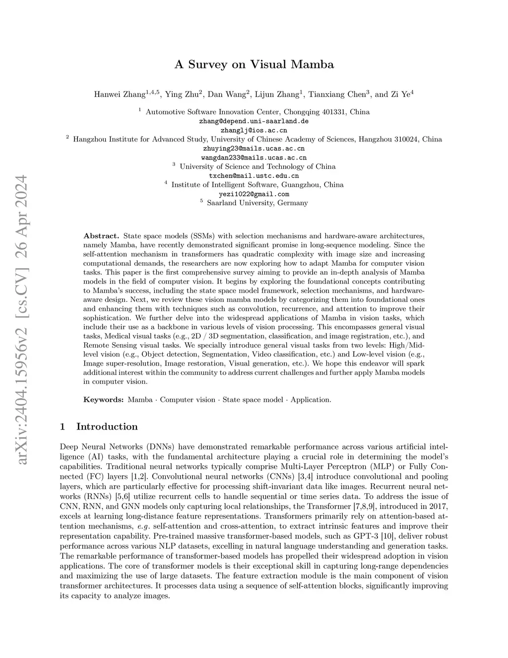 A Survey on Visual Mamba