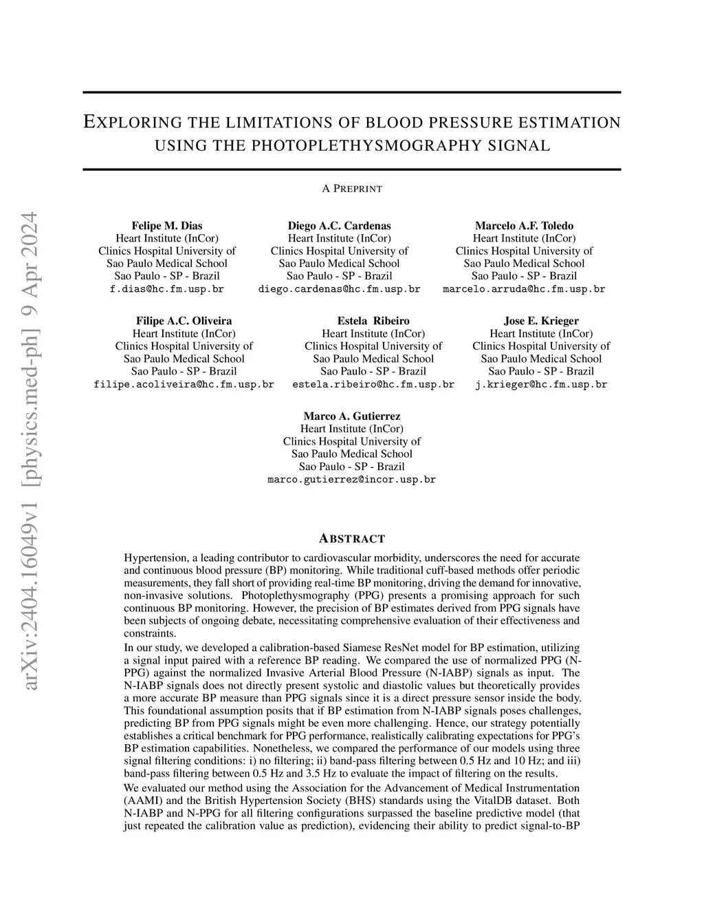 Hypertension, a leading contributor to cardiovascular morbidity, underscores the need for accurate and continuous blood pressure (BP) monitoring. Photoplethysmography (PPG) presents a promising approach to this end. However, the precision of BP estimates derived from PPG signals has been the subject of ongoing debate, necessitating a comprehensive evaluation of their effectiveness and constraints. We developed a calibration-based Siamese ResNet model for BP estimation, using a signal input paired with a reference BP reading. We compared the use of normalized PPG (N-PPG) against the normalized Invasive Arterial Blood Pressure (N-IABP) signals as input. The N-IABP signals do not directly present systolic and diastolic values but theoretically provide a more accurate BP measure than PPG signals since it is a direct pressure sensor inside the body. Our strategy establishes a critical benchmark for PPG performance, realistically calibrating expectations for PPG's BP estimation capabilities. Nonetheless, we compared the performance of our models using different signal-filtering conditions to evaluate the impact of filtering on the results. We evaluated our method using the AAMI and the BHS standards employing the VitalDB dataset. The N-IABP signals meet with AAMI standards for both Systolic Blood Pressure (SBP) and Diastolic Blood Pressure (DBP), with errors of 1.29+-6.33mmHg for systolic pressure and 1.17+-5.78mmHg for systolic and diastolic pressure respectively for the raw N-IABP signal. In contrast, N-PPG signals, in their best setup, exhibited inferior performance than N-IABP, presenting 1.49+-11.82mmHg and 0.89+-7.27mmHg for systolic and diastolic pressure respectively. Our findings highlight the potential and limitations of employing PPG for BP estimation, showing that these signals contain information correlated to BP but may not be sufficient for predicting it accurately.