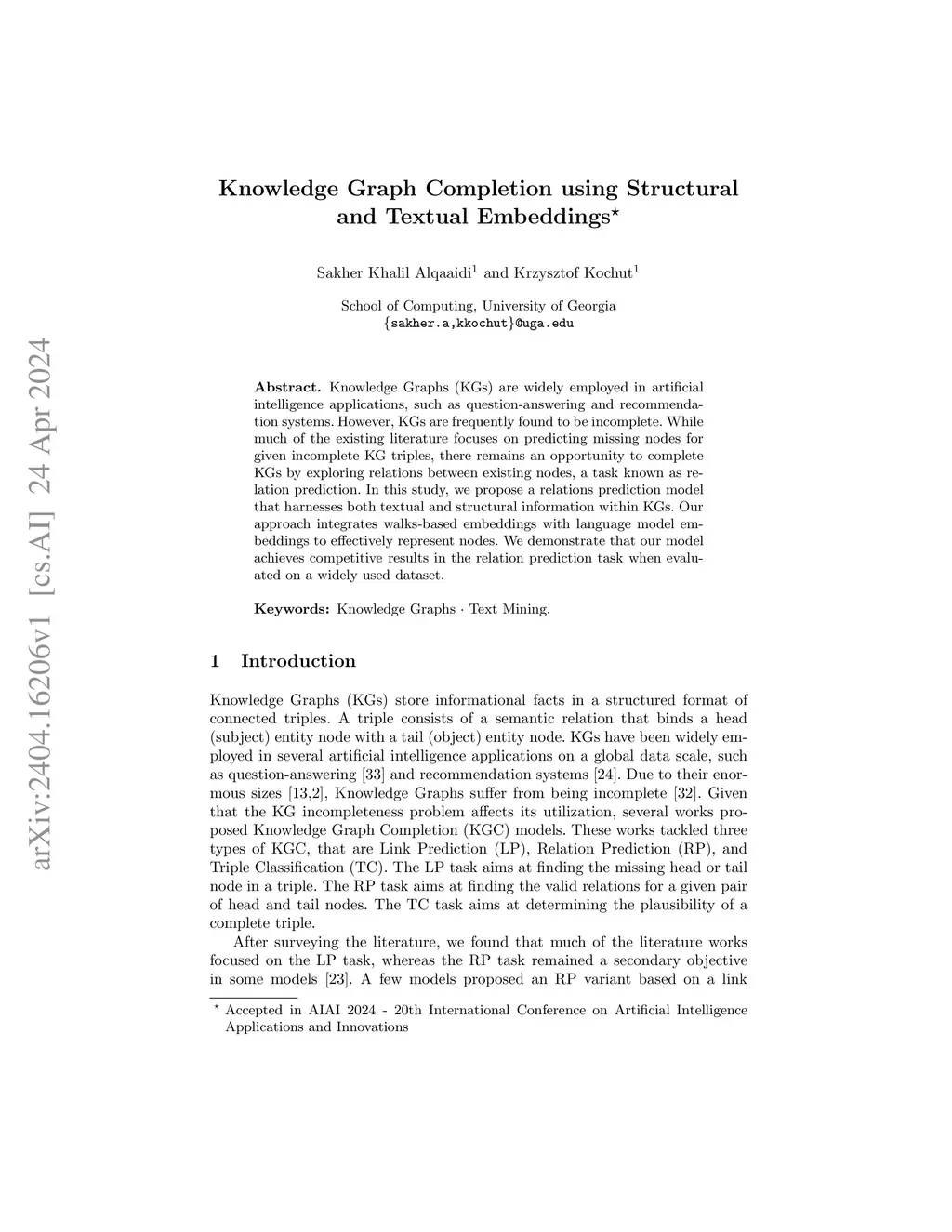 Knowledge Graph Completion using Structural and Textual Embeddings