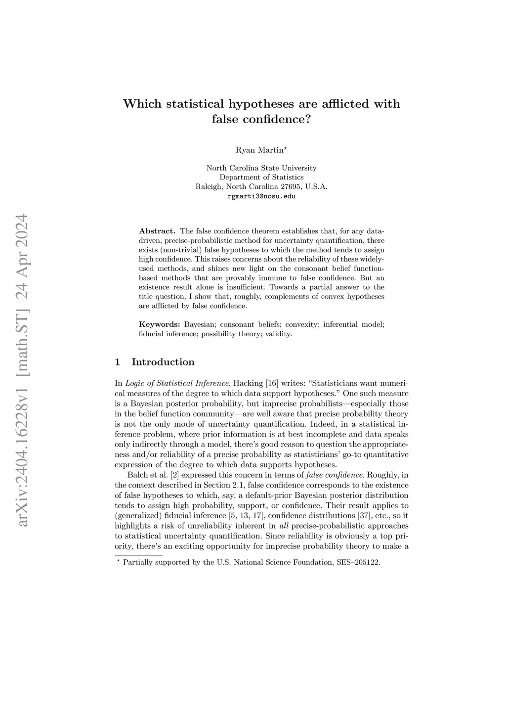 Which statistical hypotheses are afflicted with false confidence?