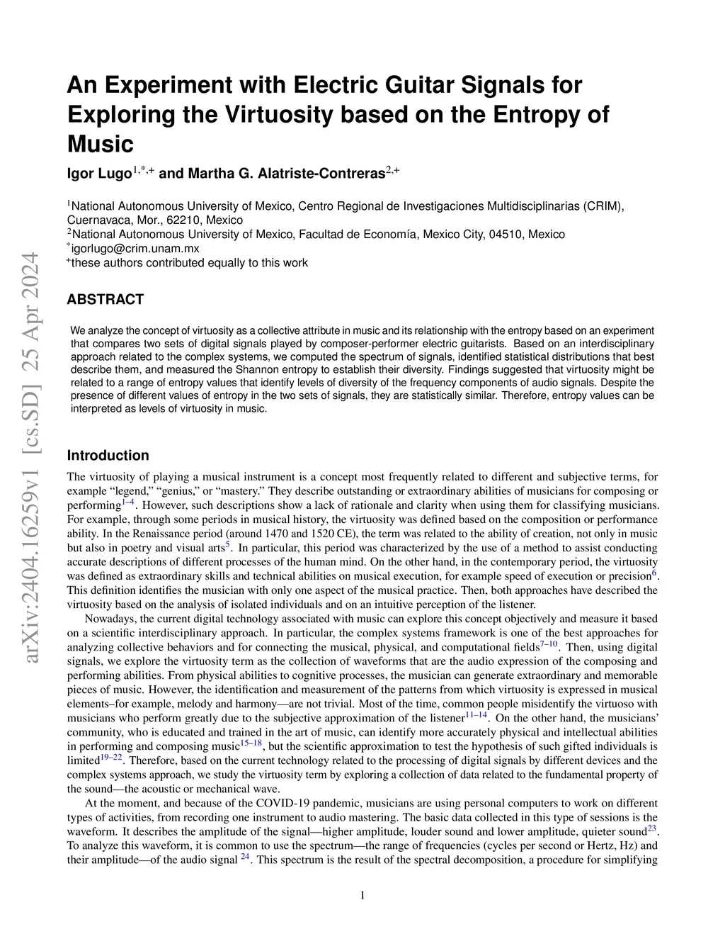 An Experiment with Electric Guitar Signals for Exploring the Virtuosity