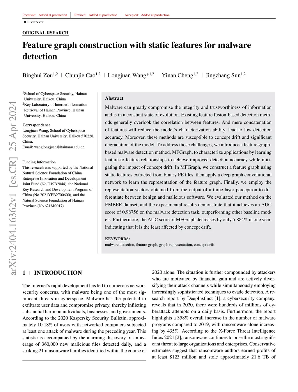Feature graph construction with static features for malware detection