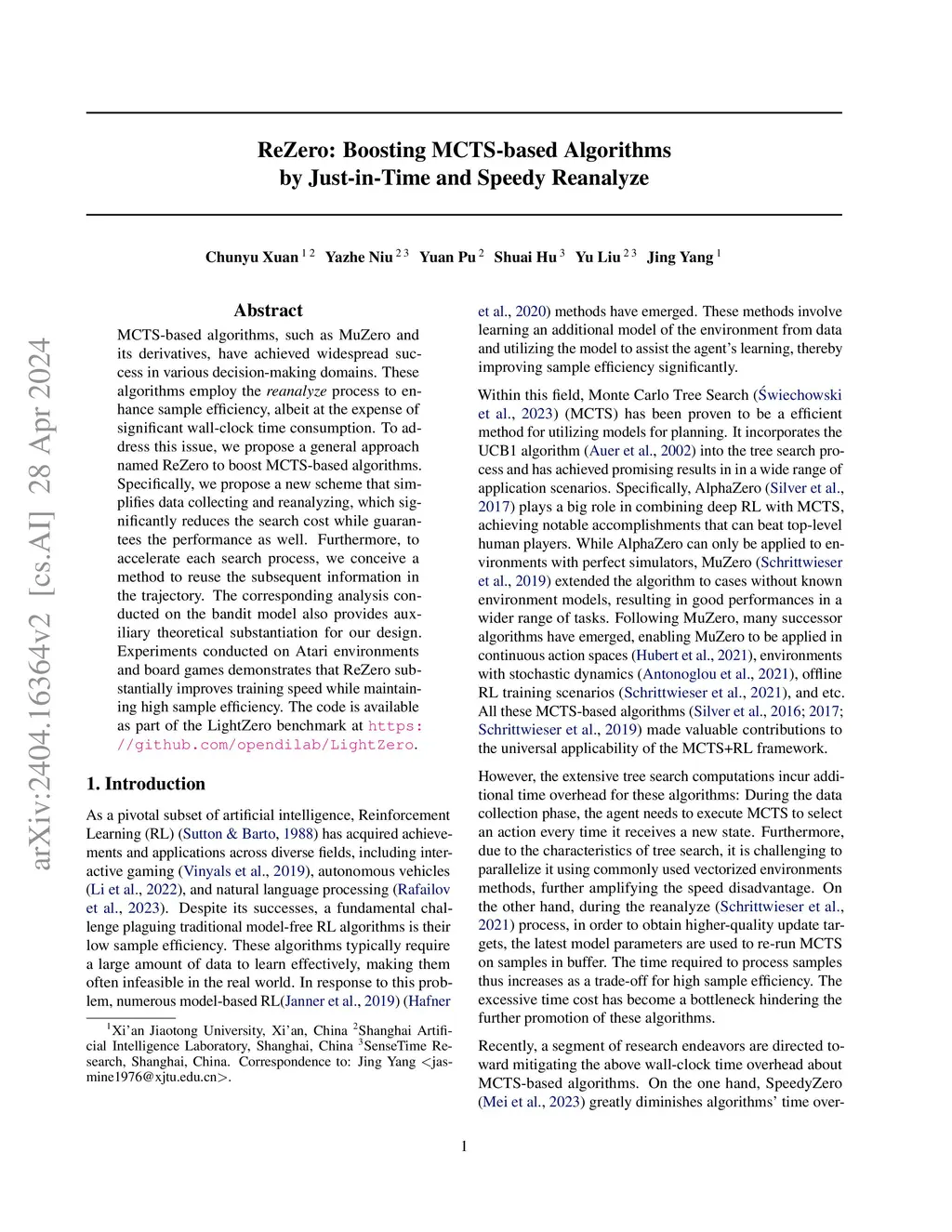 Monte Carlo Tree Search (MCTS)-based algorithms, such as MuZero and its derivatives, have achieved widespread success in various decision-making domains. These algorithms employ the reanalyze process to enhance sample efficiency from stale data, albeit at the expense of significant wall-clock time consumption. To address this issue, we propose a general approach named ReZero to boost tree search operations for MCTS-based algorithms. Specifically, drawing inspiration from the one-armed bandit model, we reanalyze training samples through a backward-view reuse technique which uses the value estimation of a certain child node to save the corresponding sub-tree search time. To further adapt to this design, we periodically reanalyze the entire buffer instead of frequently reanalyzing the mini-batch. The synergy of these two designs can significantly reduce the search cost and meanwhile guarantee or even improve performance, simplifying both data collecting and reanalyzing. Experiments conducted on Atari environments, DMControl suites and board games demonstrate that ReZero substantially improves training speed while maintaining high sample efficiency. The code is available as part of the LightZero MCTS benchmark atthis https URL.