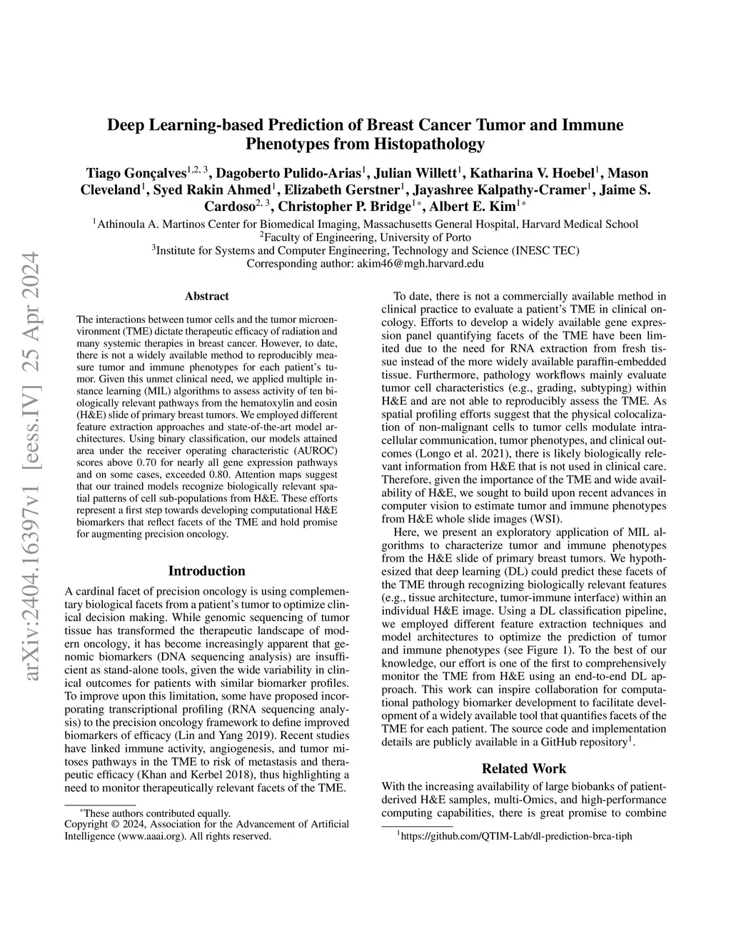 Deep Learning-based Prediction of Breast Cancer Tumor and Immune
