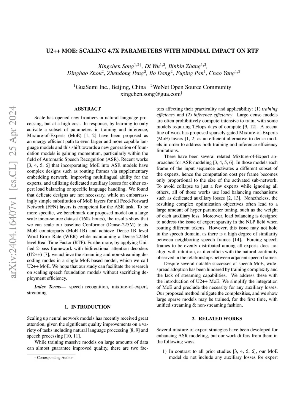 U2++ MoE: Scaling 4.7x parameters with minimal impact on RTF