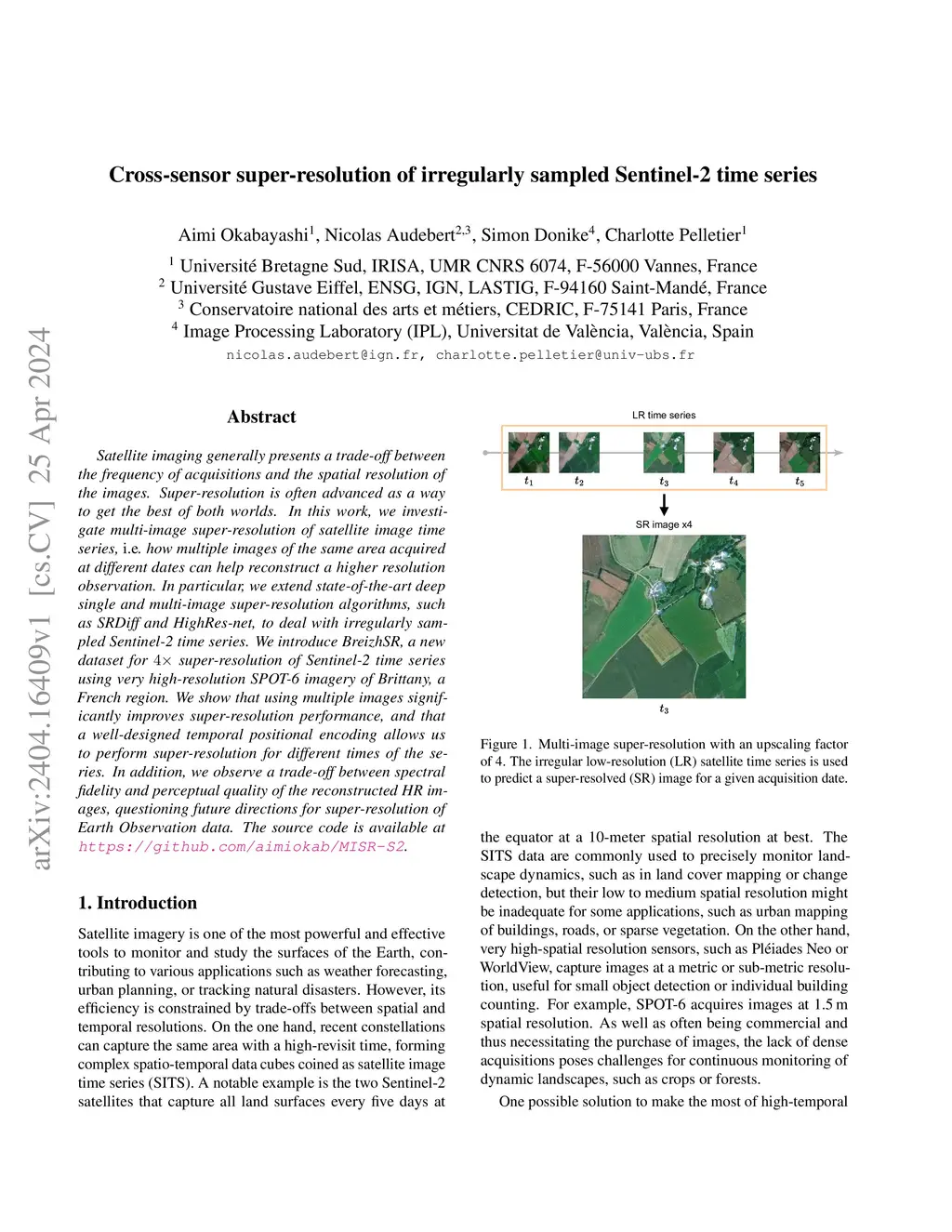 Cross-sensor super-resolution of irregularly sampled Sentinel-2 time
