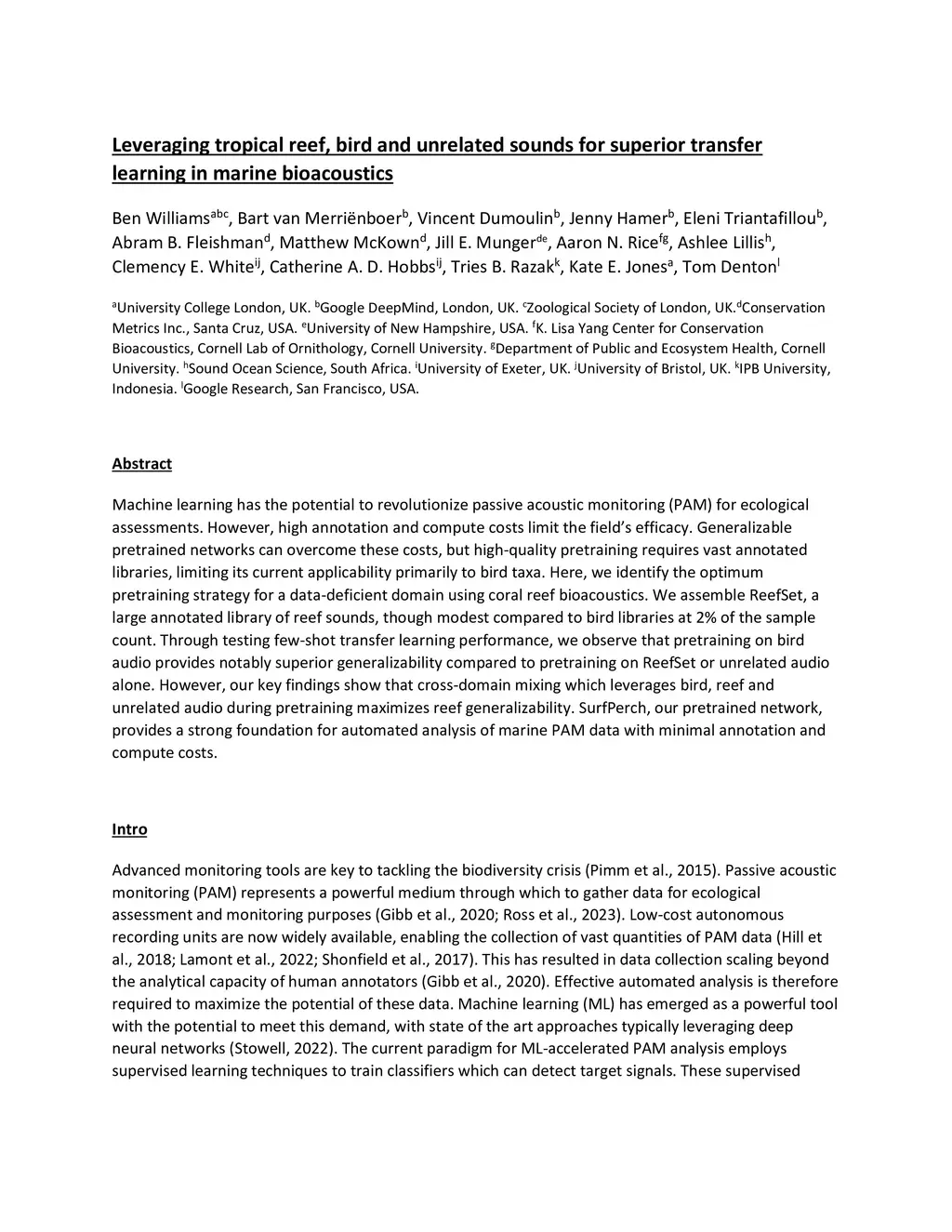 Leveraging tropical reef, bird and unrelated sounds for superior