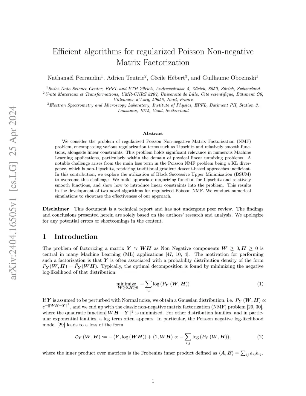 Efficient algorithms for regularized Poisson Non-negative Matrix