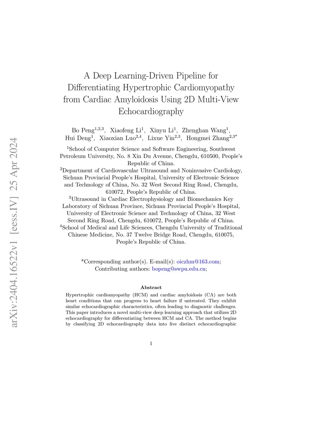 Hypertrophic cardiomyopathy (HCM) and cardiac amyloidosis (CA) are both heart conditions that can progress to heart failure if untreated. They exhibit similar echocardiographic characteristics, often leading to diagnostic challenges. This paper introduces a novel multi-view deep learning approach that utilizes 2D echocardiography for differentiating between HCM and CA. The method begins by classifying 2D echocardiography data into five distinct echocardiographic views: apical 4-chamber, parasternal long axis of left ventricle, parasternal short axis at levels of the mitral valve, papillary muscle, and apex. It then extracts features of each view separately and combines five features for disease classification. A total of 212 patients diagnosed with HCM, and 30 patients diagnosed with CA, along with 200 individuals with normal cardiac function(Normal), were enrolled in this study from 2018 to 2022. This approach achieved a precision, recall of 0.905, and micro-F1 score of 0.904, demonstrating its effectiveness in accurately identifying HCM and CA using a multi-view analysis.