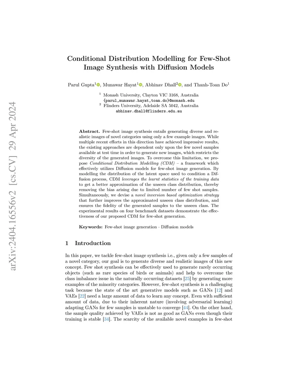 Conditional Distribution Modelling for Few-Shot Image Synthesis with