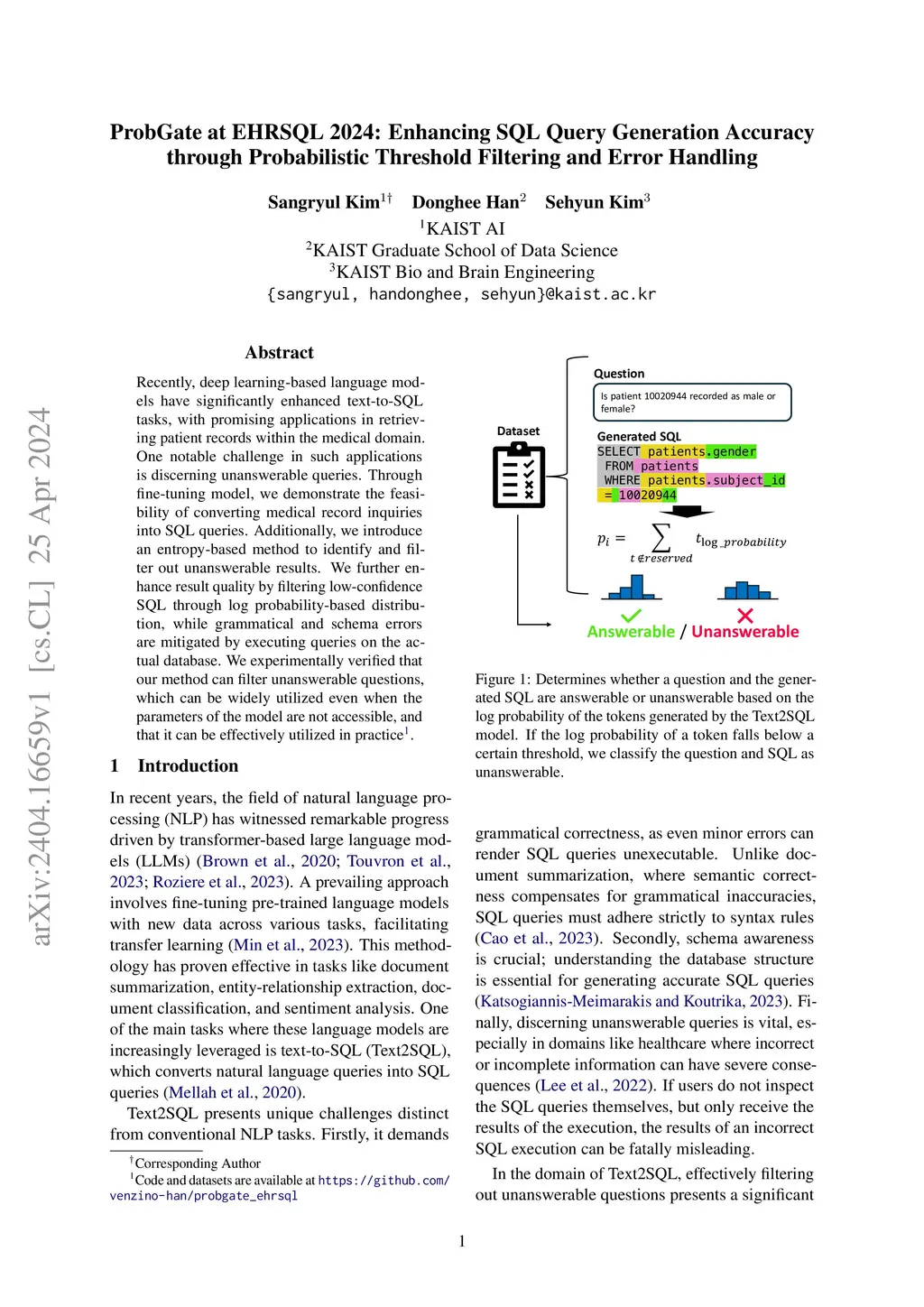 ProbGate at EHRSQL 2024: Enhancing SQL Query Generation Accuracy through