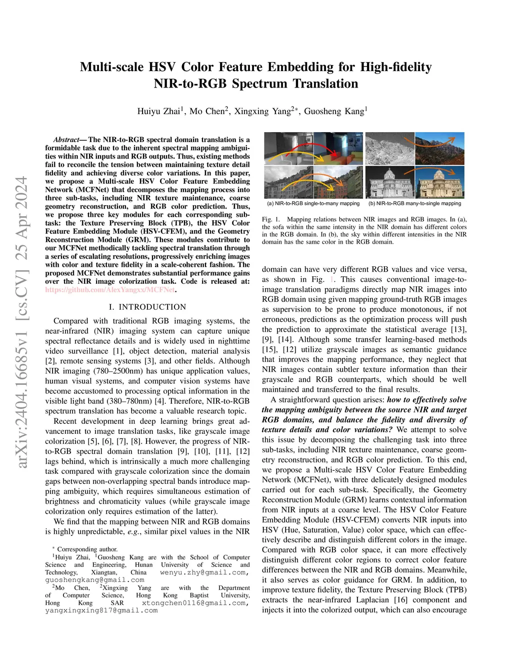Multi-scale HSV Color Feature Embedding for High-fidelity NIR-to-RGB