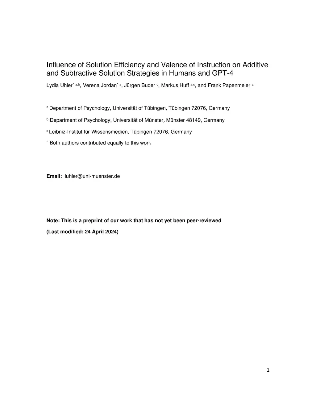 Influence of Solution Efficiency and Valence of Instruction on Additive