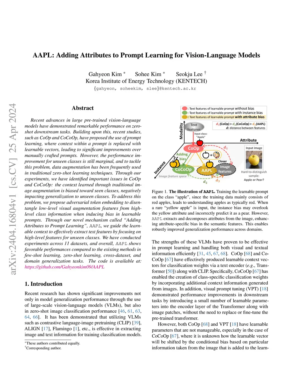 AAPL: Adding Attributes to Prompt Learning for Vision-Language Models