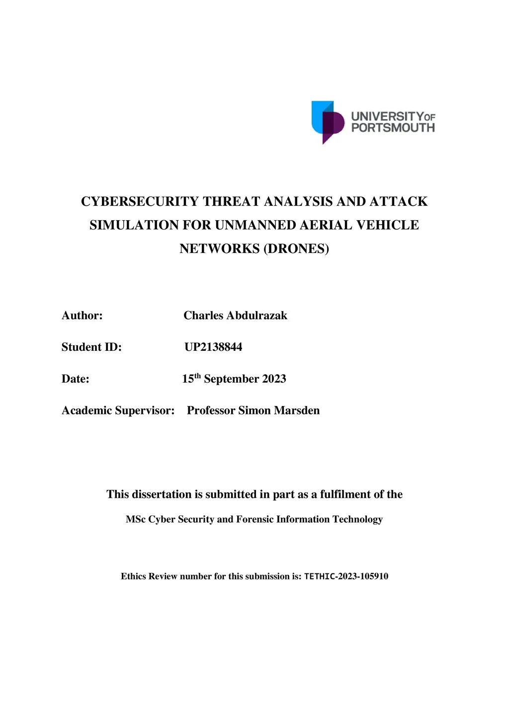Cybersecurity Threat Analysis And Attack Simulations For Unmanned Aerial
