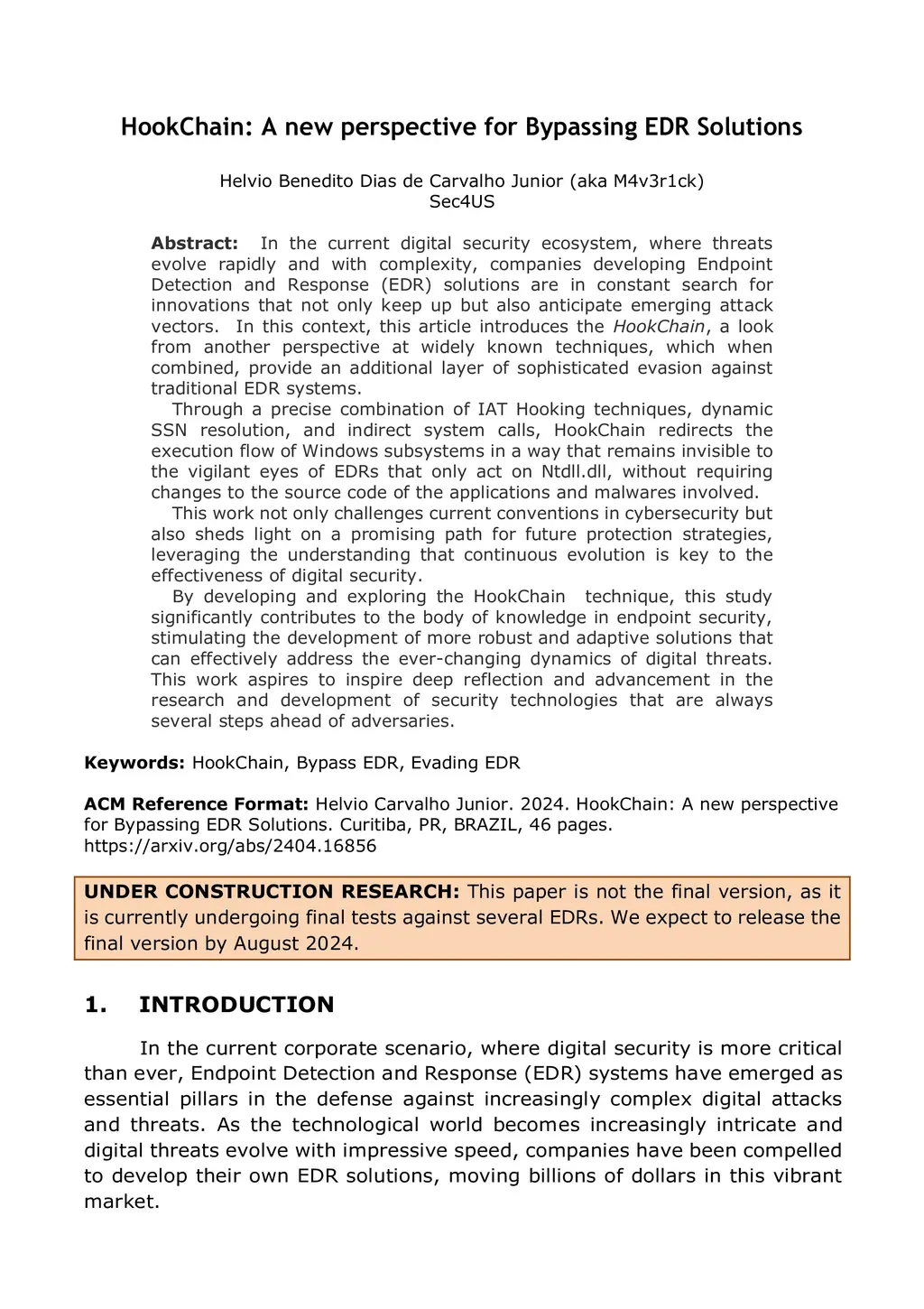 HookChain: A new perspective for Bypassing EDR Solutions