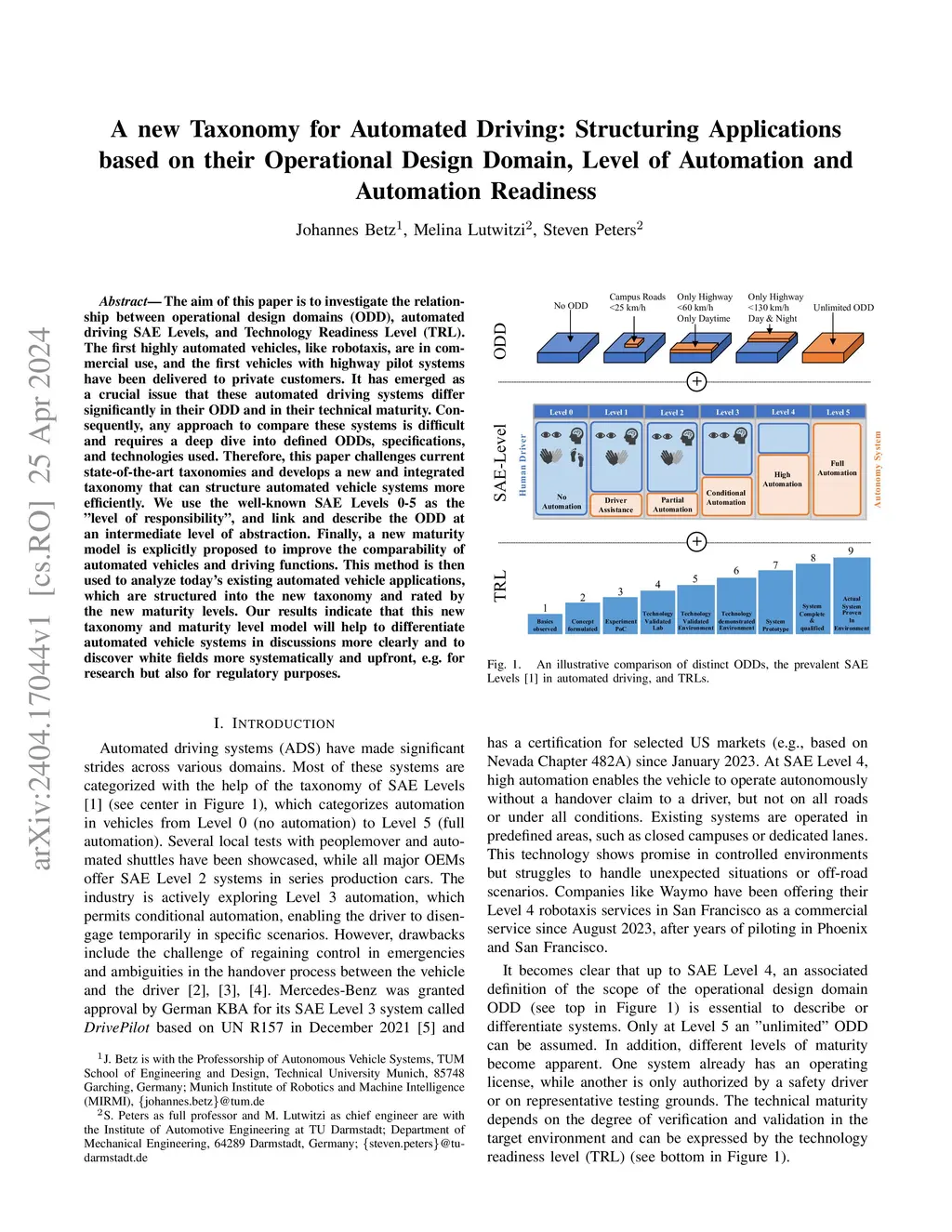 their Operational Design Domain, Level of Automation and Automation Readiness
