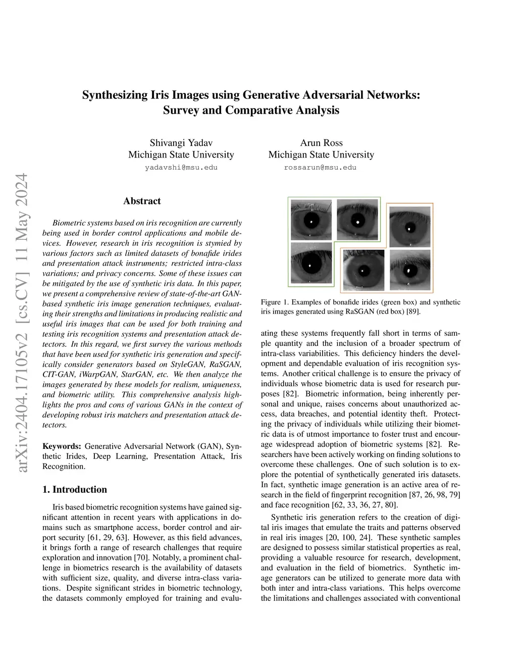 Synthesizing Iris Images using Generative Adversarial Networks: Survey