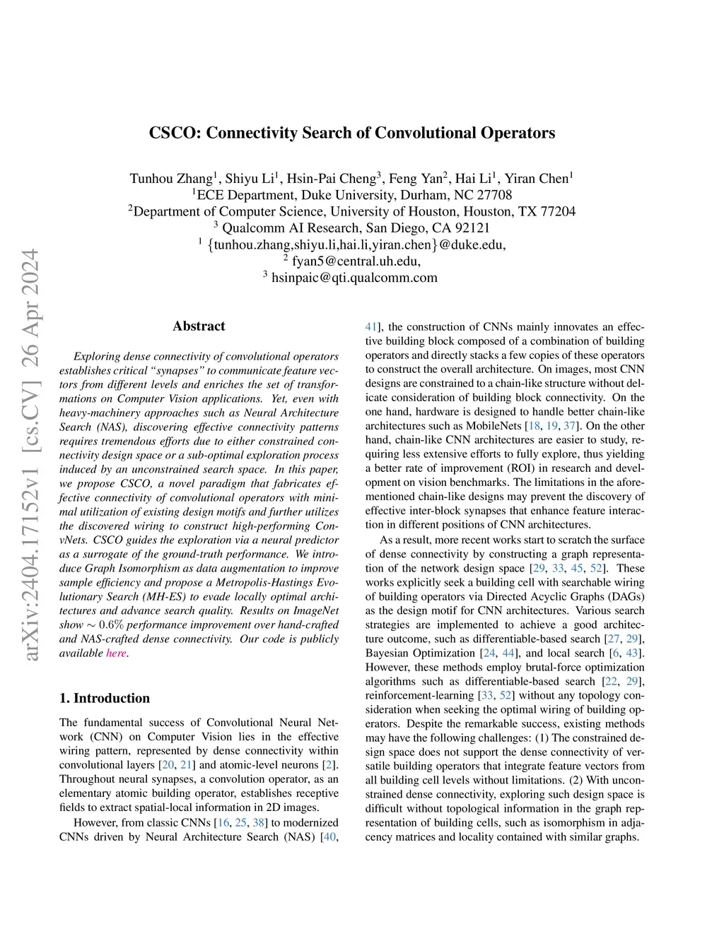 CSCO: Connectivity Search of Convolutional Operators