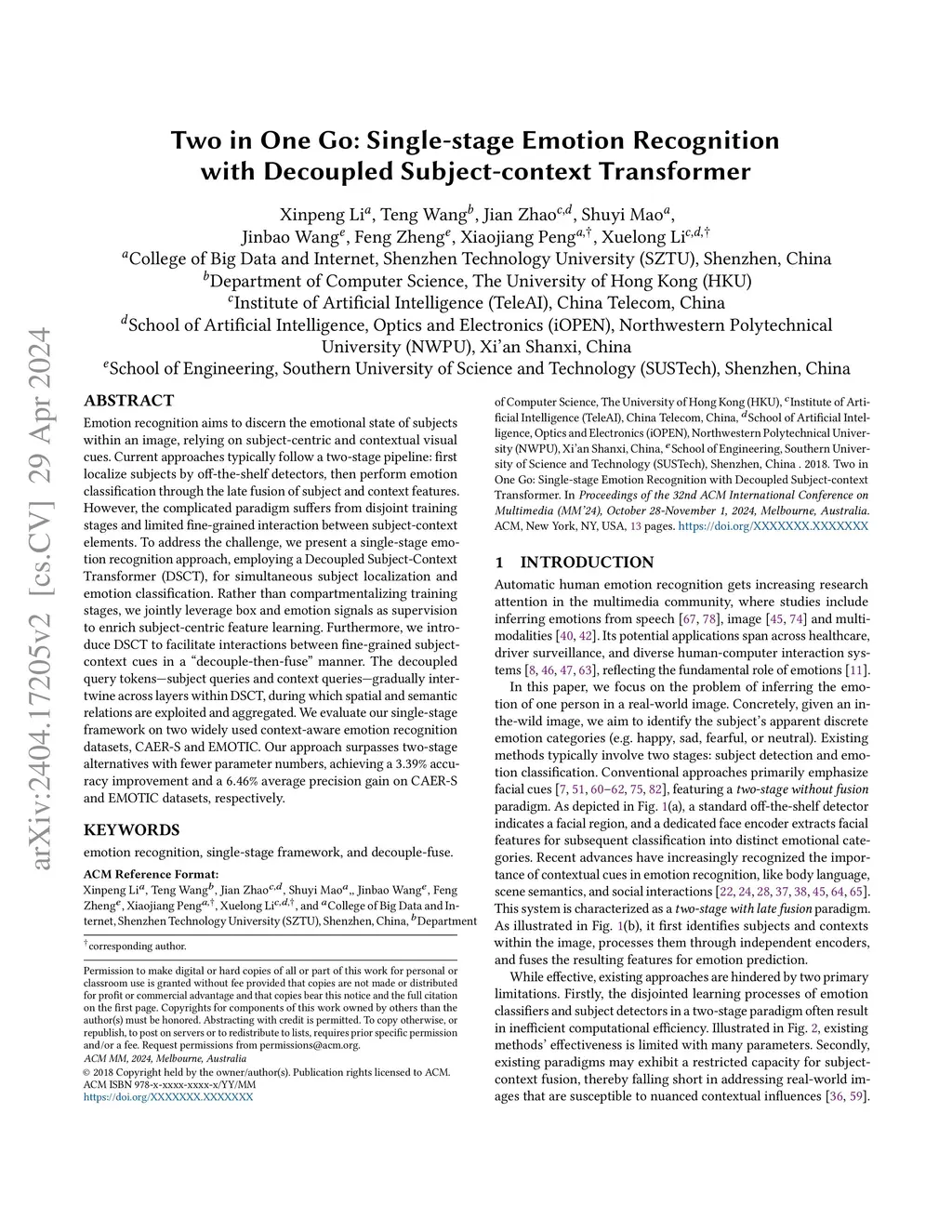 Two in One Go: Single-stage Emotion Recognition with Decoupled