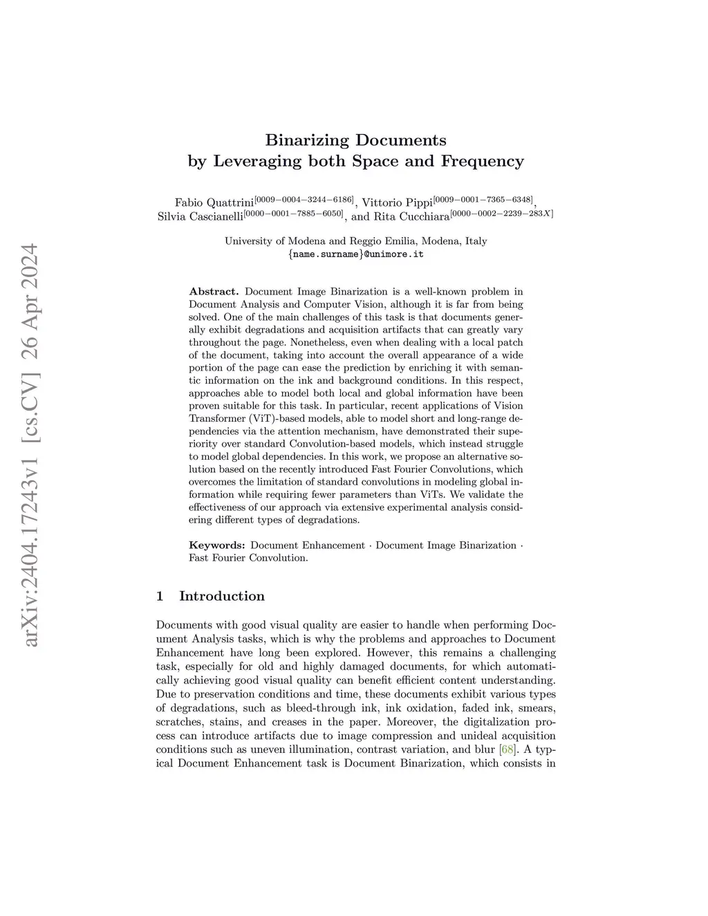 Binarizing Documents by Leveraging both Space and Frequency