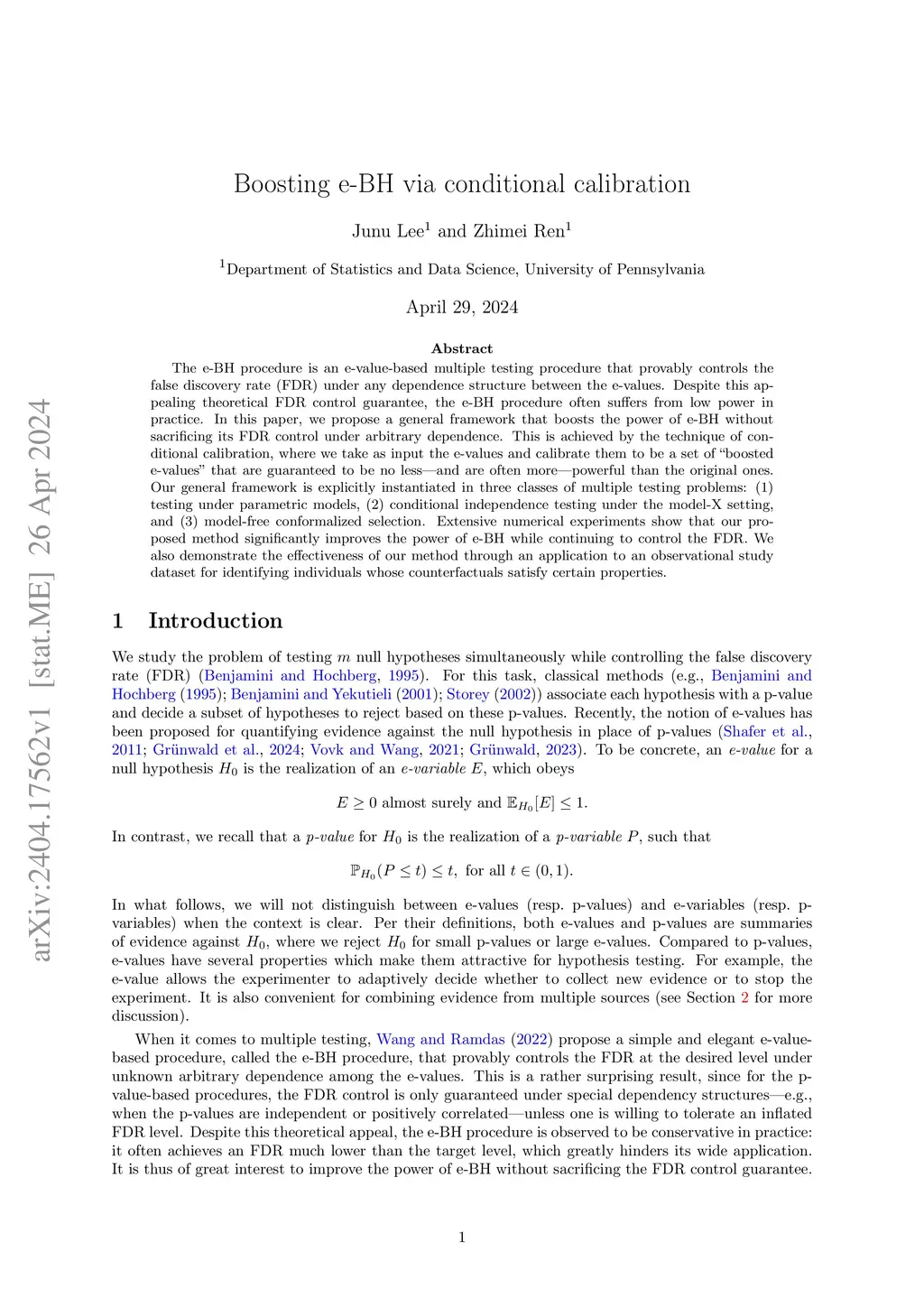The e-BH procedure is an e-value-based multiple testing procedure that provably controls the false discovery rate (FDR) under any dependence structure between the e-values. Despite this appealing theoretical FDR control guarantee, the e-BH procedure often suffers from low power in practice. In this paper, we propose a general framework that boosts the power of e-BH without sacrificing its FDR control under arbitrary dependence. This is achieved by the technique of conditional calibration, where we take as input the e-values and calibrate them to be a set of "boosted e-values" that are guaranteed to be no less -- and are often more -- powerful than the original ones. Our general framework is explicitly instantiated in three classes of multiple testing problems: (1) testing under parametric models, (2) conditional independence testing under the model-X setting, and (3) model-free conformalized selection. Extensive numerical experiments show that our proposed method significantly improves the power of e-BH while continuing to control the FDR. We also demonstrate the effectiveness of our method through an application to an observational study dataset for identifying individuals whose counterfactuals satisfy certain properties.