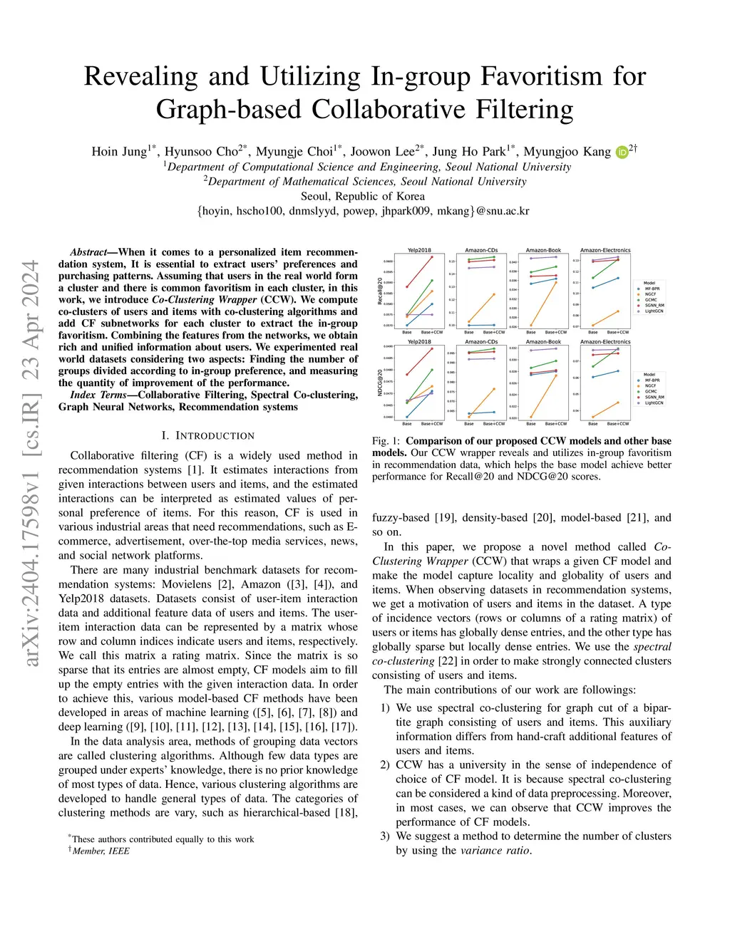 When it comes to a personalized item recommendation system, It is essential to extract users' preferences and purchasing patterns. Assuming that users in the real world form a cluster and there is common favoritism in each cluster, in this work, we introduce Co-Clustering Wrapper (CCW). We compute co-clusters of users and items with co-clustering algorithms and add CF subnetworks for each cluster to extract the in-group favoritism. Combining the features from the networks, we obtain rich and unified information about users. We experimented real world datasets considering two aspects: Finding the number of groups divided according to in-group preference, and measuring the quantity of improvement of the performance.