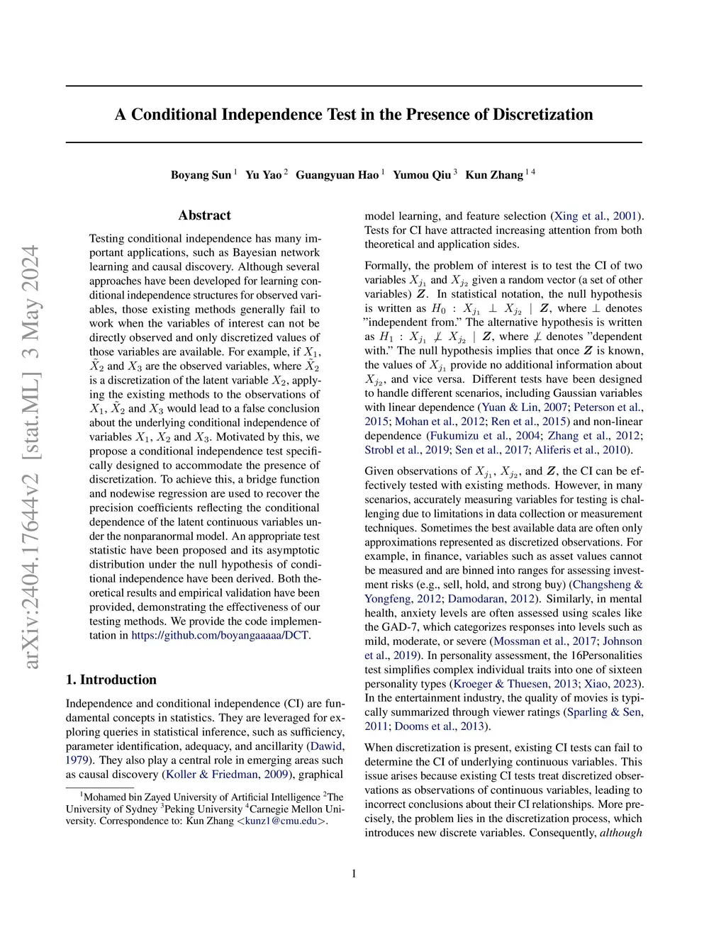 Testing conditional independence has many applications, such as in Bayesian network learning and causal discovery. Different test methods have been proposed. However, existing methods generally can not work when only discretized observations are available. Specifically, consider , and are observed variables, where is a discretization of latent variables . Applying existing test methods to the observations of , and can lead to a false conclusion about the underlying conditional independence of variables , and . Motivated by this, we propose a conditional independence test specifically designed to accommodate the presence of such discretization. To achieve this, we design the bridge equations to recover the parameter reflecting the statistical information of the underlying latent continuous variables. An appropriate test statistic and its asymptotic distribution under the null hypothesis of conditional independence have also been derived. Both theoretical results and empirical validation have been provided, demonstrating the effectiveness of our test methods.