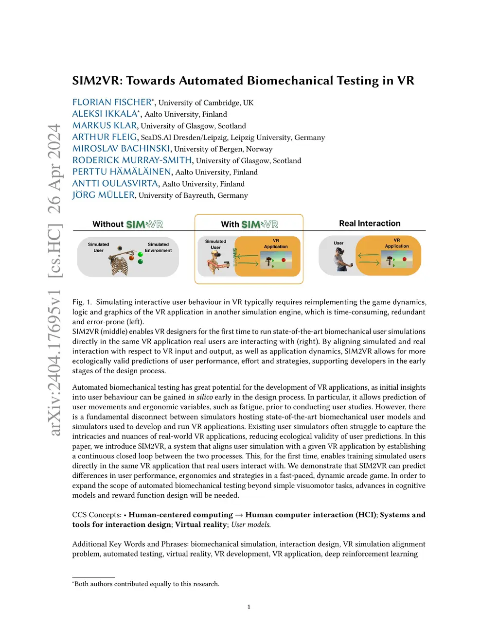SIM2VR: Towards Automated Biomechanical Testing in VR