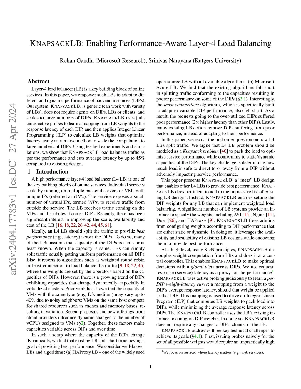 KnapsackLB: Enabling Performance-Aware Layer-4 Load Balancing