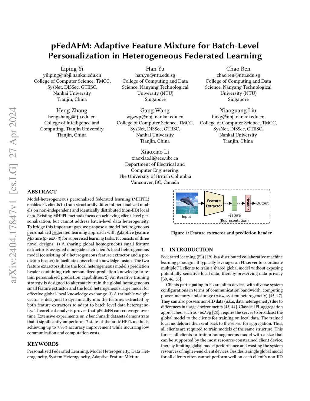 pFedAFM: Adaptive Feature Mixture for Batch-Level Personalization in