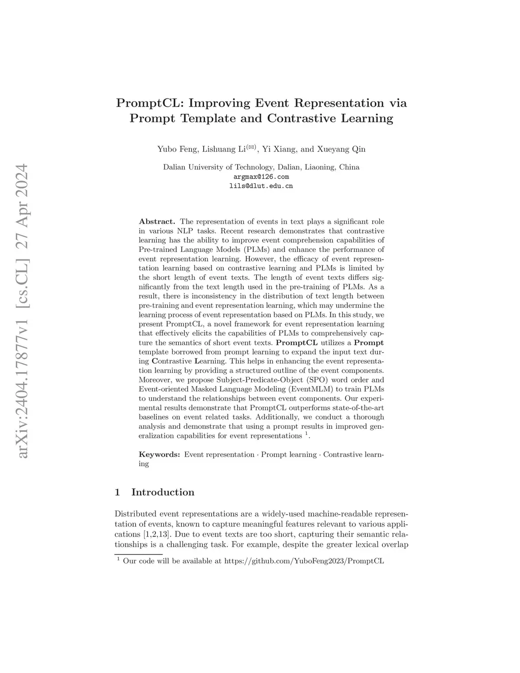 The representation of events in text plays a significant role in various NLP tasks. Recent research demonstrates that contrastive learning has the ability to improve event comprehension capabilities of Pre-trained Language Models (PLMs) and enhance the performance of event representation learning. However, the efficacy of event representation learning based on contrastive learning and PLMs is limited by the short length of event texts. The length of event texts differs significantly from the text length used in the pre-training of PLMs. As a result, there is inconsistency in the distribution of text length between pre-training and event representation learning, which may undermine the learning process of event representation based on PLMs. In this study, we present PromptCL, a novel framework for event representation learning that effectively elicits the capabilities of PLMs to comprehensively capture the semantics of short event texts. PromptCL utilizes a Prompt template borrowed from prompt learning to expand the input text during Contrastive Learning. This helps in enhancing the event representation learning by providing a structured outline of the event components. Moreover, we propose Subject-Predicate-Object (SPO) word order and Event-oriented Masked Language Modeling (EventMLM) to train PLMs to understand the relationships between event components. Our experimental results demonstrate that PromptCL outperforms state-of-the-art baselines on event related tasks. Additionally, we conduct a thorough analysis and demonstrate that using a prompt results in improved generalization capabilities for event representations. Our code will be available at https://github.com/YuboFeng2023/PromptCL.