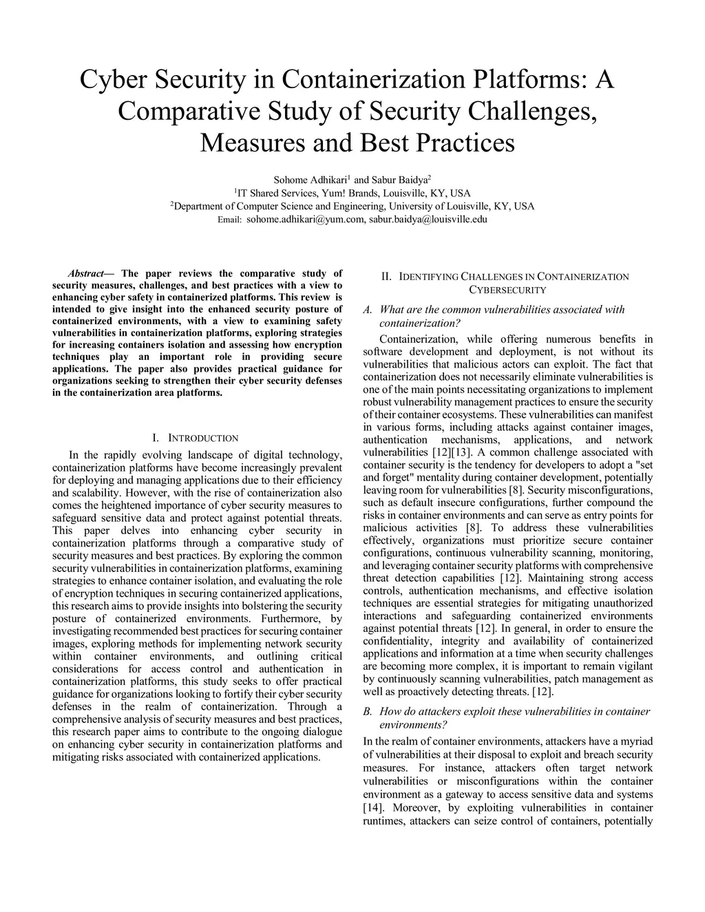 Cyber Security in Containerization Platforms: A Comparative Study of