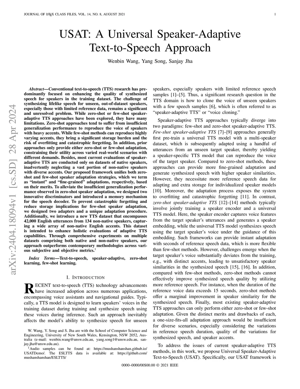 USAT: A Universal Speaker-Adaptive Text-to-Speech Approach