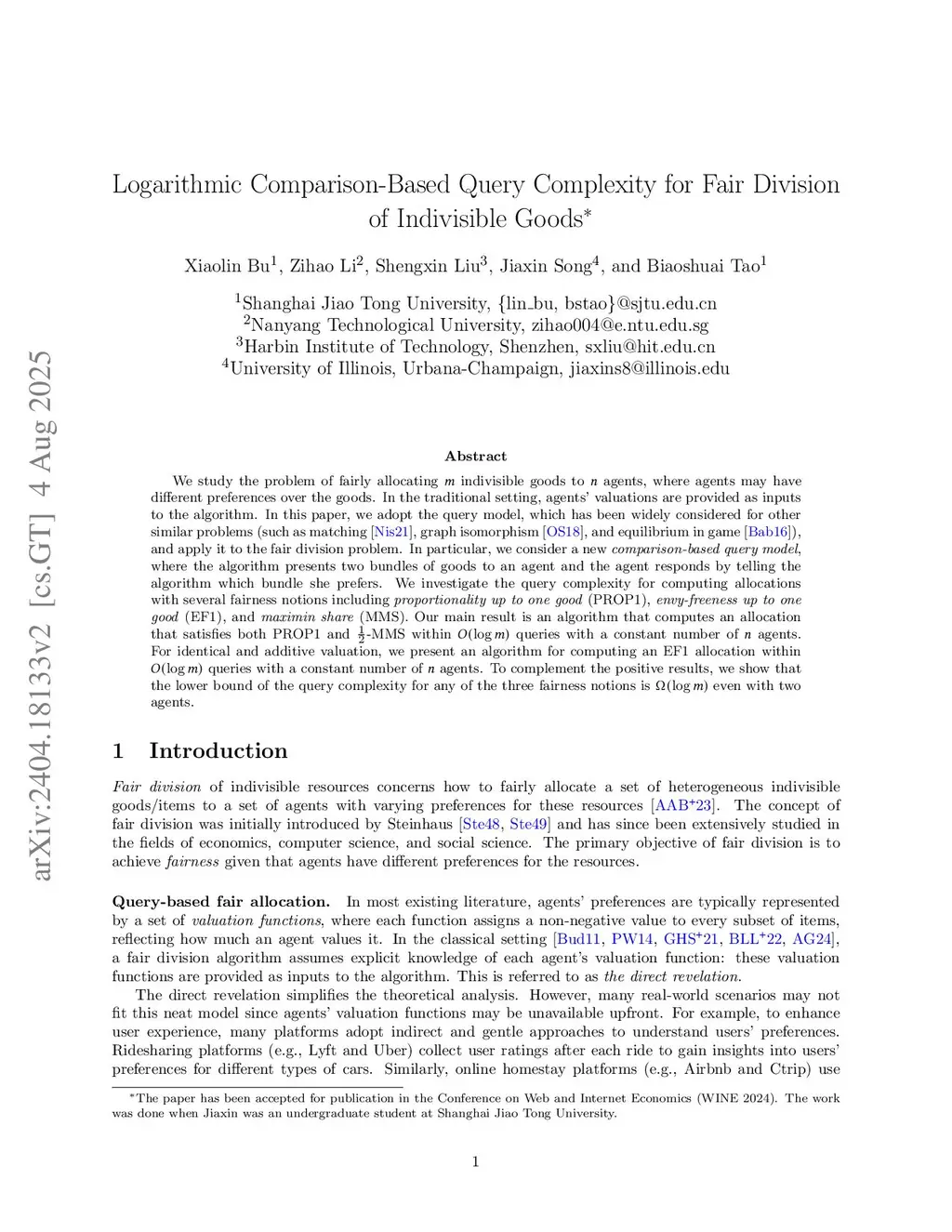 Logarithmic Comparison-Based Query Complexity for Fair Division of Indivisible Goods