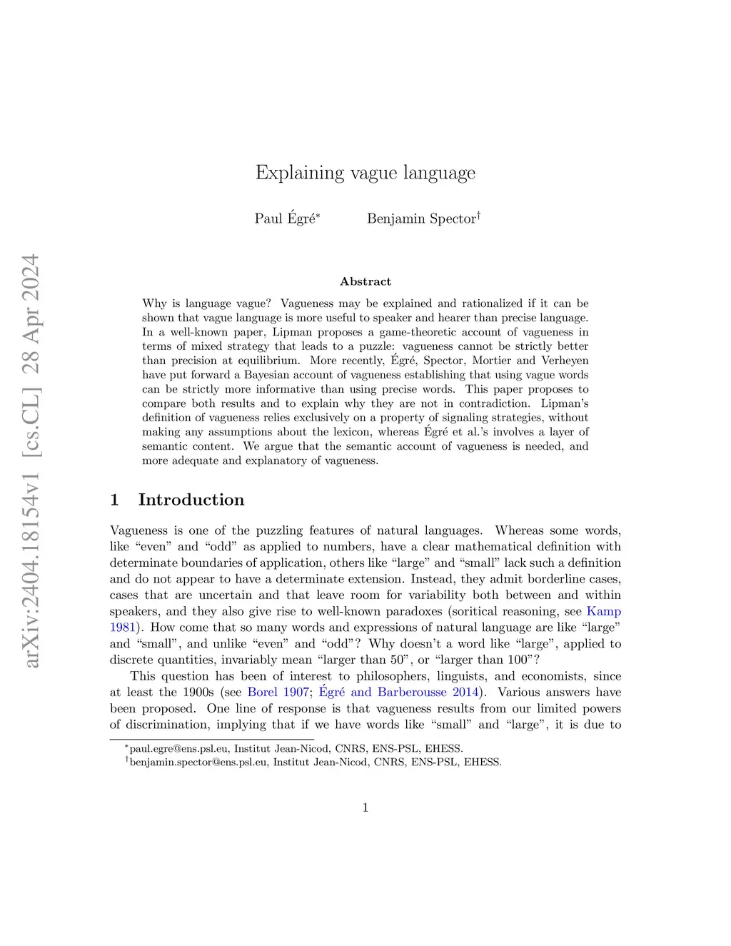 Why is language vague? Vagueness may be explained and rationalized if it can be shown that vague language is more useful to speaker and hearer than precise language. In a well-known paper, Lipman proposes a game-theoretic account of vagueness in terms of mixed strategy that leads to a puzzle: vagueness cannot be strictly better than precision at equilibrium. More recently, Égré, Spector, Mortier and Verheyen have put forward a Bayesian account of vagueness establishing that using vague words can be strictly more informative than using precise words. This paper proposes to compare both results and to explain why they are not in contradiction. Lipman's definition of vagueness relies exclusively on a property of signaling strategies, without making any assumptions about the lexicon, whereas Égré et al.'s involves a layer of semantic content. We argue that the semantic account of vagueness is needed, and more adequate and explanatory of vagueness.
