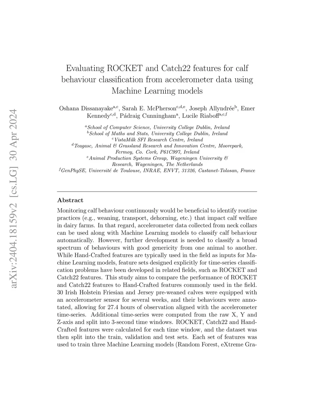 Evaluating ROCKET and Catch22 features for calf behaviour classification