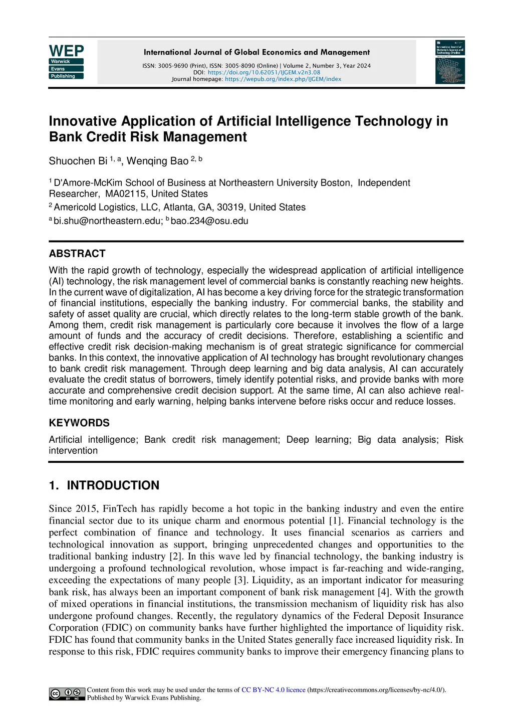 With the rapid growth of technology, especially the widespread application of artificial intelligence (AI) technology, the risk management level of commercial banks is constantly reaching new heights. In the current wave of digitalization, AI has become a key driving force for the strategic transformation of financial institutions, especially the banking industry. For commercial banks, the stability and safety of asset quality are crucial, which directly relates to the long-term stable growth of the bank. Among them, credit risk management is particularly core because it involves the flow of a large amount of funds and the accuracy of credit decisions. Therefore, establishing a scientific and effective credit risk decision-making mechanism is of great strategic significance for commercial banks. In this context, the innovative application of AI technology has brought revolutionary changes to bank credit risk management. Through deep learning and big data analysis, AI can accurately evaluate the credit status of borrowers, timely identify potential risks, and provide banks with more accurate and comprehensive credit decision support. At the same time, AI can also achieve realtime monitoring and early warning, helping banks intervene before risks occur and reduce losses.