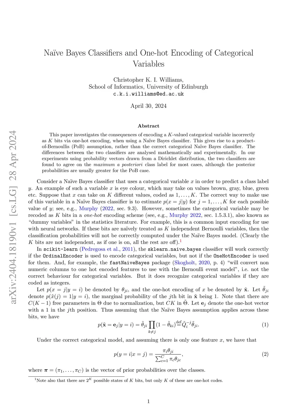 Naive Bayes Classifiers and One-hot Encoding of Categorical Variables