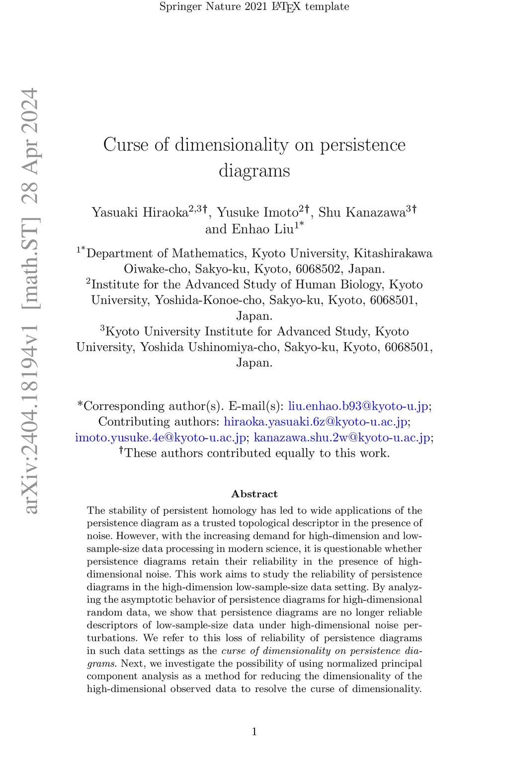 The stability of persistent homology has led to wide applications of the persistence diagram as a trusted topological descriptor in the presence of noise. However, with the increasing demand for high-dimension and low-sample-size data processing in modern science, it is questionable whether persistence diagrams retain their reliability in the presence of high-dimensional noise. This work aims to study the reliability of persistence diagrams in the high-dimension low-sample-size data setting. By analyzing the asymptotic behavior of persistence diagrams for high-dimensional random data, we show that persistence diagrams are no longer reliable descriptors of low-sample-size data under high-dimensional noise perturbations. We refer to this loss of reliability of persistence diagrams in such data settings as the curse of dimensionality on persistence diagrams. Next, we investigate the possibility of using normalized principal component analysis as a method for reducing the dimensionality of the high-dimensional observed data to resolve the curse of dimensionality. We show that this method can mitigate the curse of dimensionality on persistence diagrams. Our results shed some new light on the challenges of processing high-dimension low-sample-size data by persistence diagrams and provide a starting point for future research in this area.