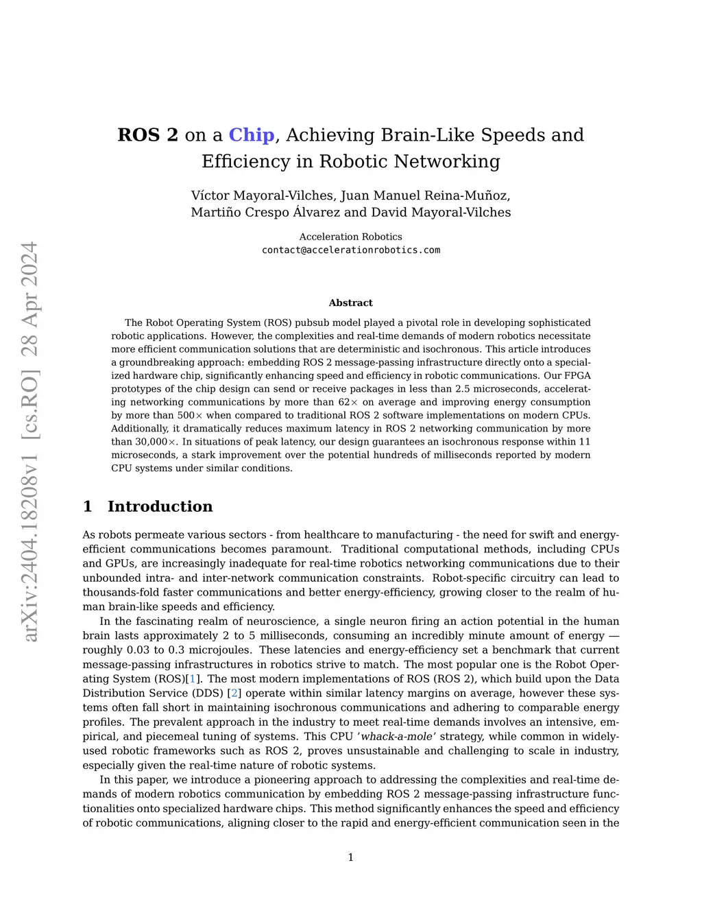 ROS 2 on a Chip, Achieving Brain-Like Speeds and Efficiency in Robotic