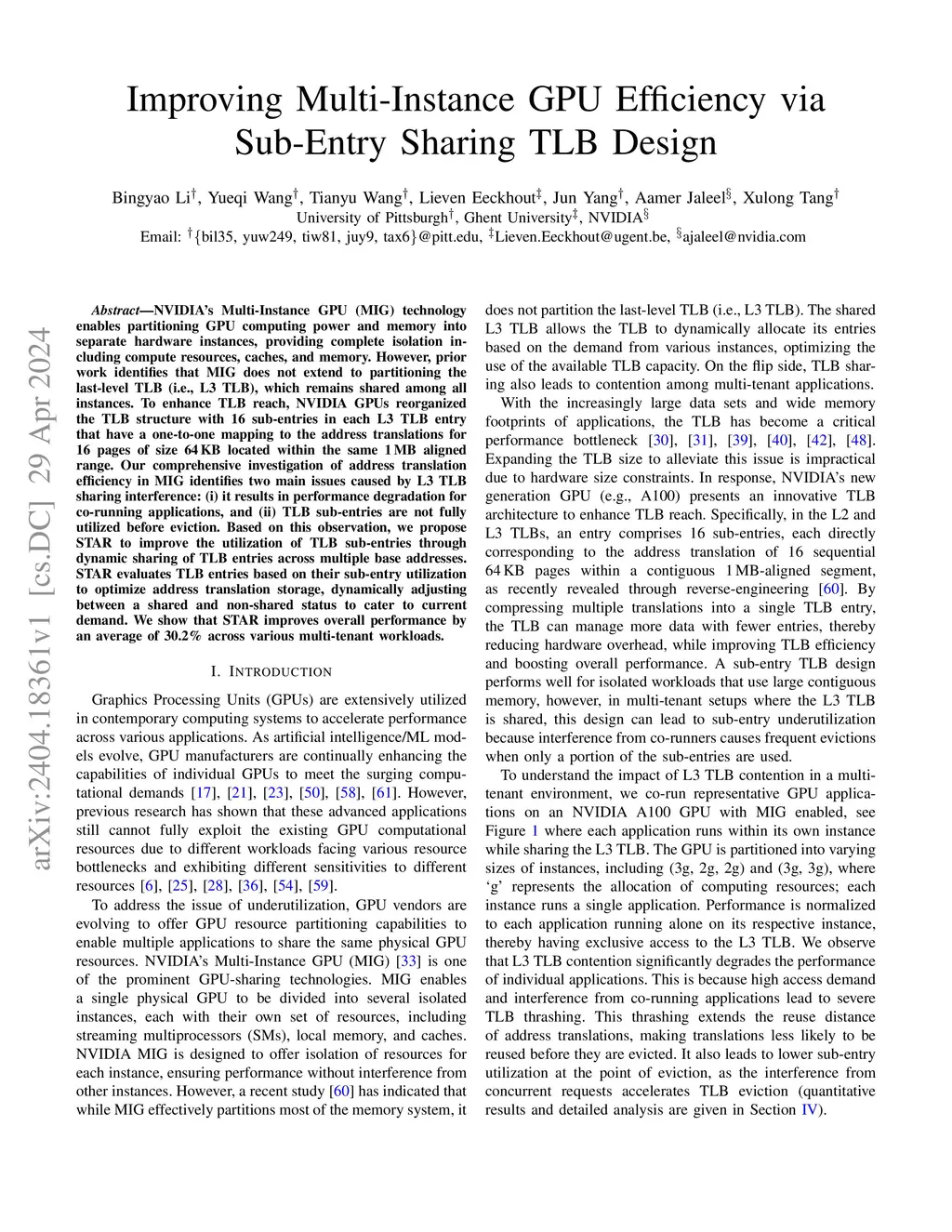 NVIDIA's Multi-Instance GPU (MIG) technology enables partitioning GPU computing power and memory into separate hardware instances, providing complete isolation including compute resources, caches, and memory. However, prior work identifies that MIG does not extend to partitioning the last-level TLB (i.e., L3 TLB), which remains shared among all instances. To enhance TLB reach, NVIDIA GPUs reorganized the TLB structure with 16 sub-entries in each L3 TLB entry that have a one-to-one mapping to the address translations for 16 pages of size 64KB located within the same 1MB aligned range. Our comprehensive investigation of address translation efficiency in MIG identifies two main issues caused by L3 TLB sharing interference: (i) it results in performance degradation for co-running applications, and (ii) TLB sub-entries are not fully utilized before eviction. Based on this observation, we propose STAR to improve the utilization of TLB sub-entries through dynamic sharing of TLB entries across multiple base addresses. STAR evaluates TLB entries based on their sub-entry utilization to optimize address translation storage, dynamically adjusting between a shared and non-shared status to cater to current demand. We show that STAR improves overall performance by an average of 30.2% across various multi-tenant workloads.