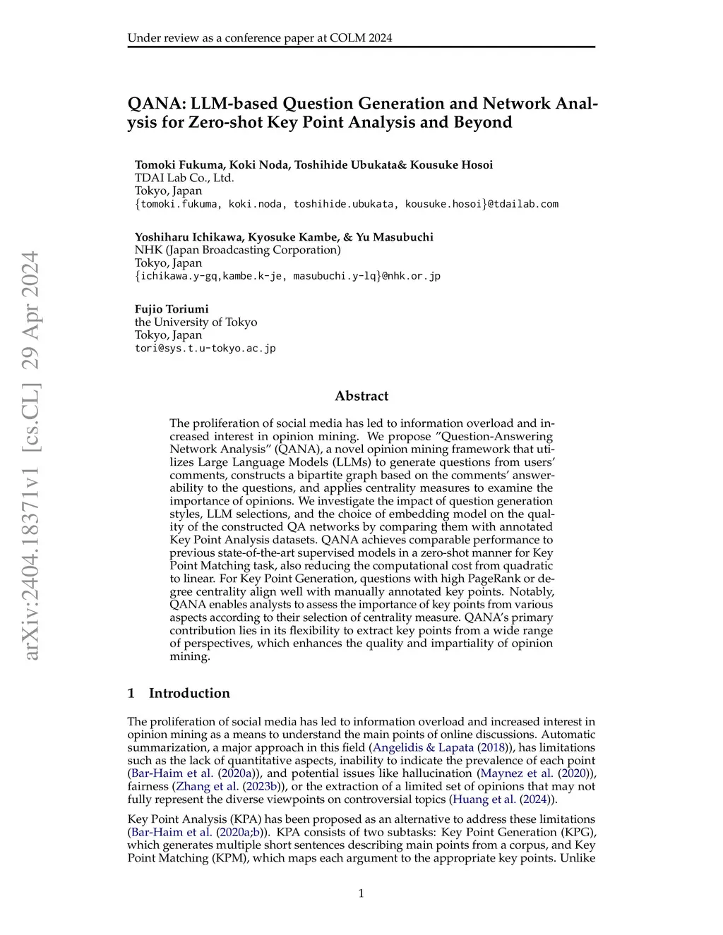 QANA: LLM-based Question Generation and Network Analysis for Zero-shot