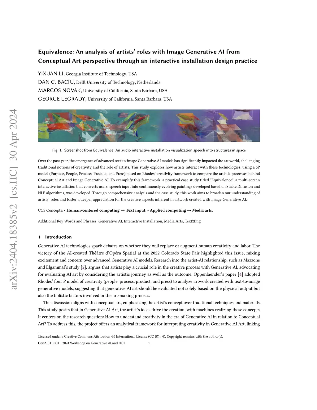 Over the past year, the emergence of advanced text-to-image Generative AI models has significantly impacted the art world, challenging traditional notions of creativity and the role of artists. This study explores how artists interact with these technologies, using a 5P model (Purpose, People, Process, Product, and Press) based on Rhodes' creativity framework to compare the artistic processes behind Conceptual Art and Image Generative AI. To exemplify this framework, a practical case study titled "Equivalence", a multi-screen interactive installation that converts users' speech input into continuously evolving paintings developed based on Stable Diffusion and NLP algorithms, was developed. Through comprehensive analysis and the case study, this work aims to broaden our understanding of artists' roles and foster a deeper appreciation for the creative aspects inherent in artwork created with Image Generative AI.