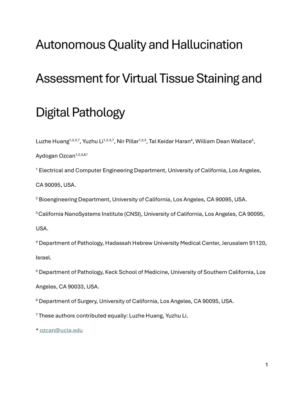 Histopathological staining of human tissue is essential for disease diagnosis. Recent advances in virtual tissue staining technologies using artificial intelligence (AI) alleviate some of the costly and tedious steps involved in traditional histochemical staining processes, permitting multiplexed staining and tissue preservation. However, potential hallucinations and artifacts in these virtually stained tissue images pose concerns, especially for the clinical uses of these approaches. Quality assessment of histology images by experts can be subjective. Here, we present an autonomous quality and hallucination assessment method, AQuA, for virtual tissue staining and digital pathology. AQuA autonomously achieves 99.8% accuracy when detecting acceptable and unacceptable virtually stained tissue images without access to histochemically stained ground truth, and presents an agreement of 98.5% with the manual assessments made by board-certified pathologists, including identifying realistic-looking images that could mislead diagnosticians. We demonstrate the wide adaptability of AQuA across various virtually and histochemically stained human tissue images. This framework enhances the reliability of virtual tissue staining and provides autonomous quality assurance for image generation and transformation tasks in digital pathology and computational imaging.