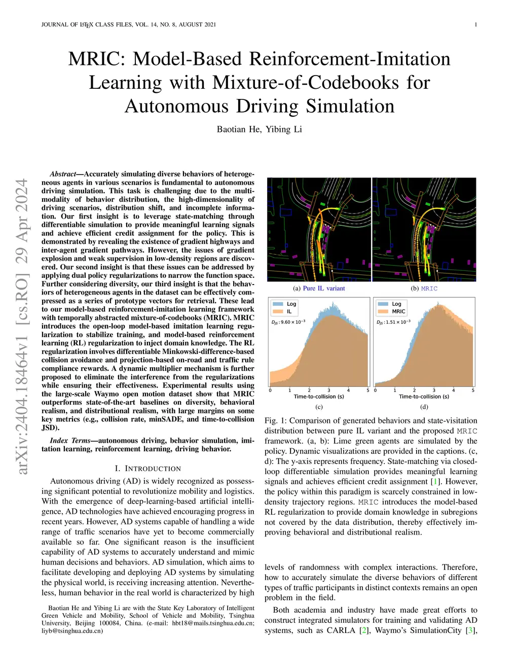 Accurately simulating diverse behaviors of heterogeneous agents in various scenarios is fundamental to autonomous driving simulation. This task is challenging due to the multi-modality of behavior distribution, the high-dimensionality of driving scenarios, distribution shift, and incomplete information. Our first insight is to leverage state-matching through differentiable simulation to provide meaningful learning signals and achieve efficient credit assignment for the policy. This is demonstrated by revealing the existence of gradient highways and interagent gradient pathways. However, the issues of gradient explosion and weak supervision in low-density regions are discovered. Our second insight is that these issues can be addressed by applying dual policy regularizations to narrow the function space. Further considering diversity, our third insight is that the behaviors of heterogeneous agents in the dataset can be effectively compressed as a series of prototype vectors for retrieval. These lead to our model-based reinforcement-imitation learning framework with temporally abstracted mixture-of-codebooks (MRIC). MRIC introduces the open-loop modelbased imitation learning regularization to stabilize training, and modelbased reinforcement learning (RL) regularization to inject domain knowledge. The RL regularization involves differentiable Minkowskidifference-based collision avoidance and projection-based on-road and traffic rule compliance rewards. A dynamic multiplier mechanism is further proposed to eliminate the interference from the regularizations while ensuring their effectiveness. Experimental results using the largescale Waymo open motion dataset show that MRIC outperforms state-ofthe-art baselines on diversity, behavioral realism, and distributional realism, with large margins on some key metrics (e.g., collision rate, minSADE, and time-to-collision JSD).